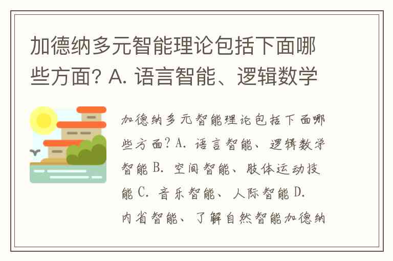 加德纳多元智能理论包括下面哪些方面? A. 语言智能、逻辑数学智能 B. 空间智能、肢体运动技能 C. 音乐智能、人际智能 D. 内省智能、了解自然智能