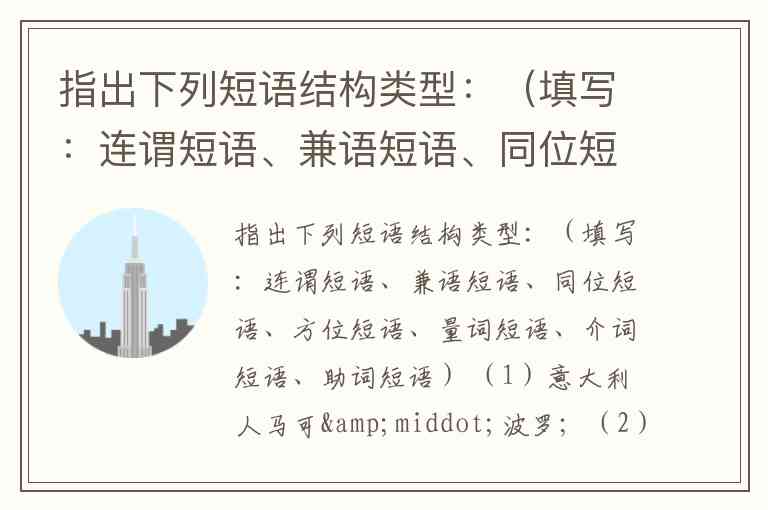 (1)意大利人马可·波罗:同位短语(“意大利人”与“马可·波罗”指同一人,构成复指关系)。