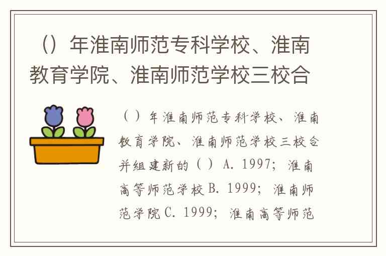()年淮南师范专科学校、淮南教育学院、淮南师范学校三校合并组建新的() A. 1997;淮南高等师范学校 B. 1999;淮南师范学院 C. 1999;淮南高等师范专科学校 D. 1997;淮南高等师范专科学校