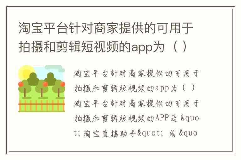 淘宝平台针对商家提供的可用于拍摄和剪辑短视频的app为( )
