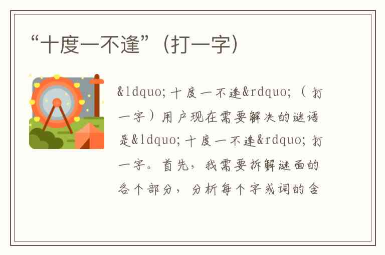 用户现在需要解决的谜语是“十度一不逢”打一字。首先,我需要拆解谜面的各个部分,分析每个字或词的含义,然后组合起来看能否形成一个汉字。