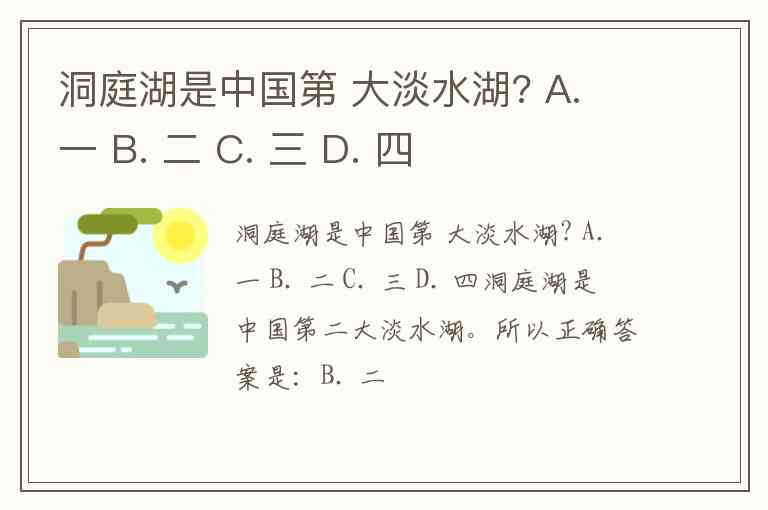 洞庭湖是中国第 大淡水湖? A. 一 B. 二 C. 三 D. 四