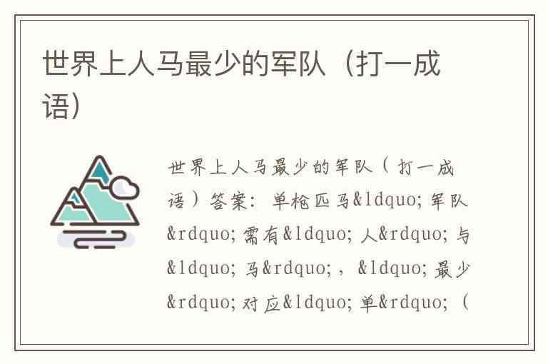 世界上人马最少的军队(打一成语)