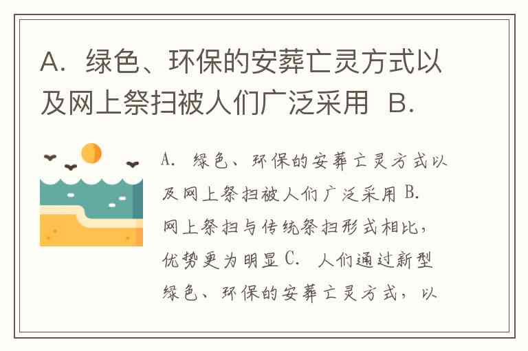 这段话主要告诉我们 B. 网上祭扫与传统祭扫形式相比,优势更为明显。