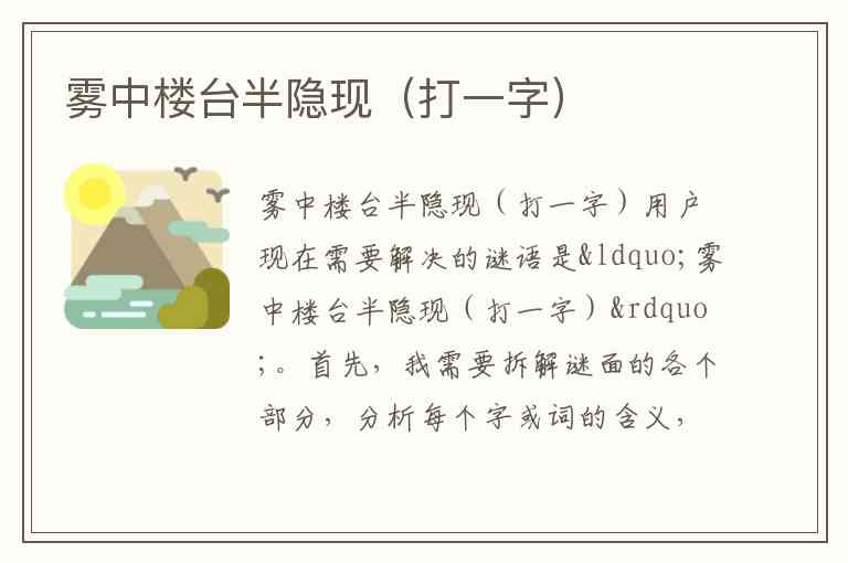 根据谜面“雾中楼台半隐现”打一字,谜底是“格”。以下是解谜思路的简要说明: