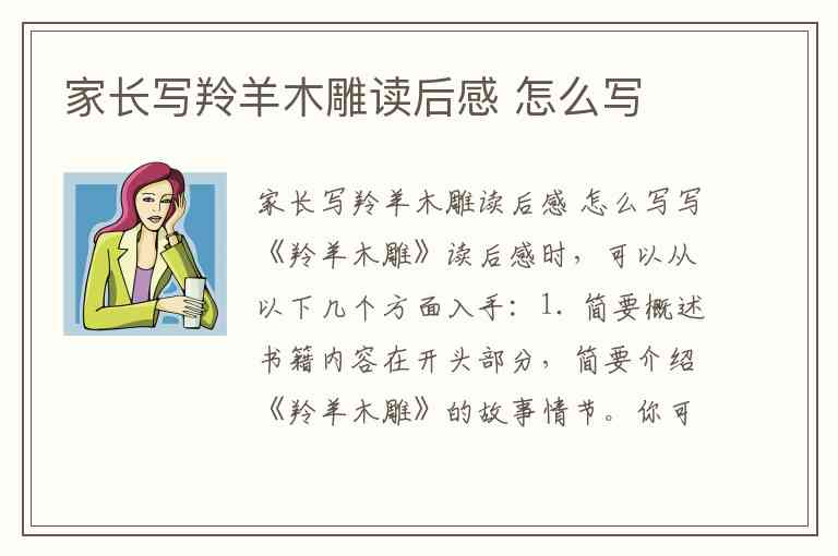 通过这些步骤,你可以写出一篇有深度、有情感的《羚羊木雕》读后感,同时结合自己的教育观念,体现出家长对孩子成长的关注和思考。