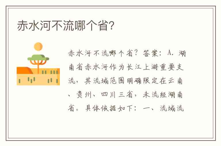 赤水河作为长江上游重要支流,其流域范围明确限定在云南、贵州、四川三省,未流经湖南省。具体依据如下: