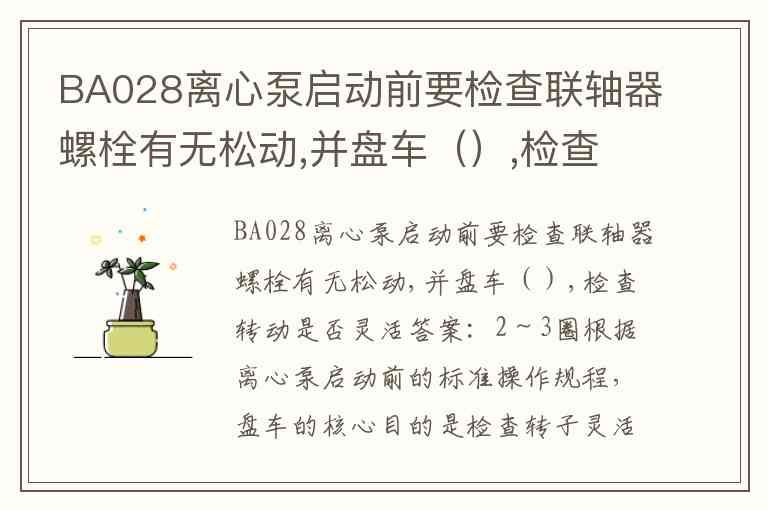 结论:BA028离心泵启动前盘车2~3圈,对应选项B。这一操作既符合行业规范,又能有效保障设备安全启动。