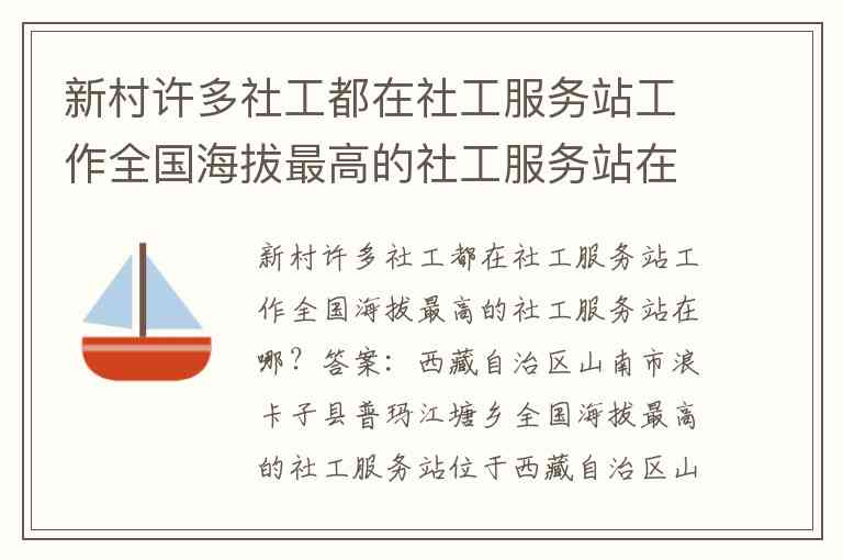 新村许多社工都在社工服务站工作全国海拔最高的社工服务站在哪?