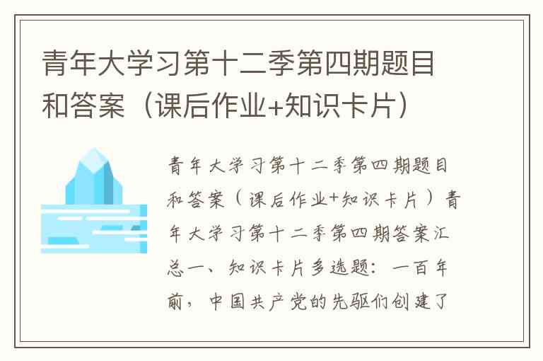 青年大学习第十二季第四期题目和答案(课后作业+知识卡片)