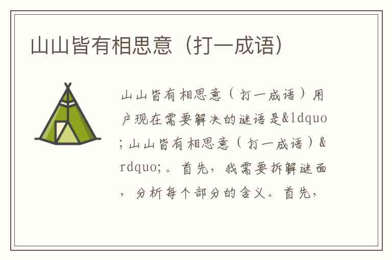 用户现在需要解决的谜语是“山山皆有相思意(打一成语)”。首先,我需要拆解谜面,分析每个部分的含义。