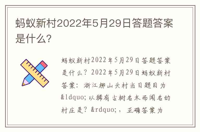 2022年5月29日蚂蚁新村答案:浙江柳山头村