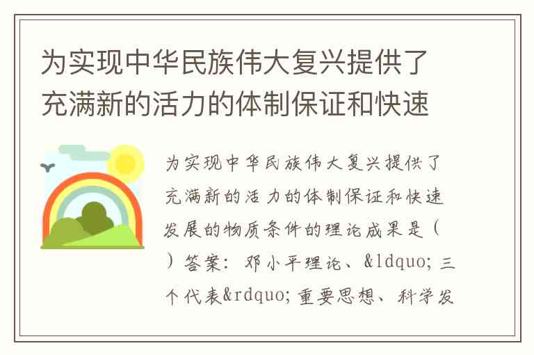 为实现中华民族伟大复兴提供了充满新的活力的体制保证和快速发展的物质条件的理论成果是()