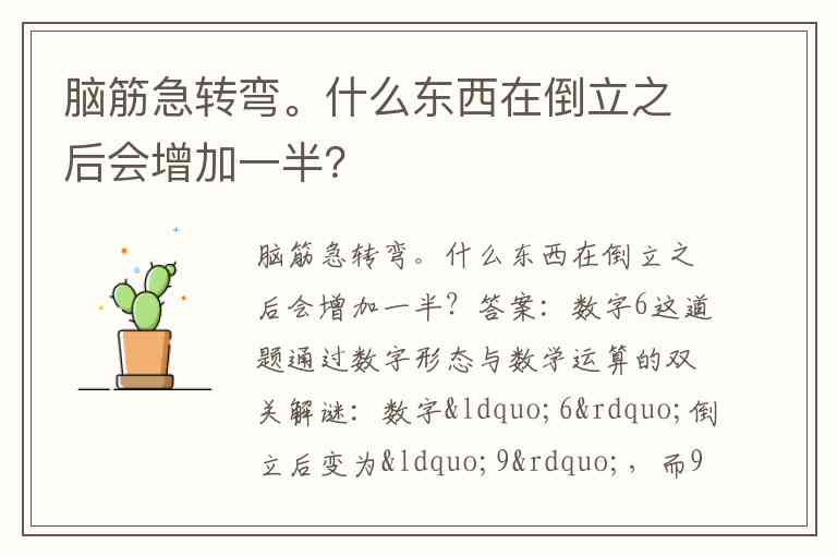 脑筋急转弯。什么东西在倒立之后会增加一半?
