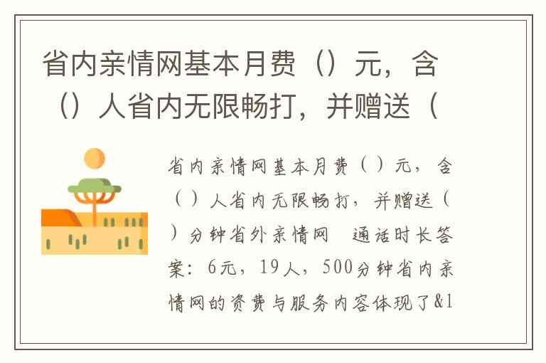 省内亲情网基本月费()元,含()人省内无限畅打,并赠送()分钟省外亲情网內通话时长
