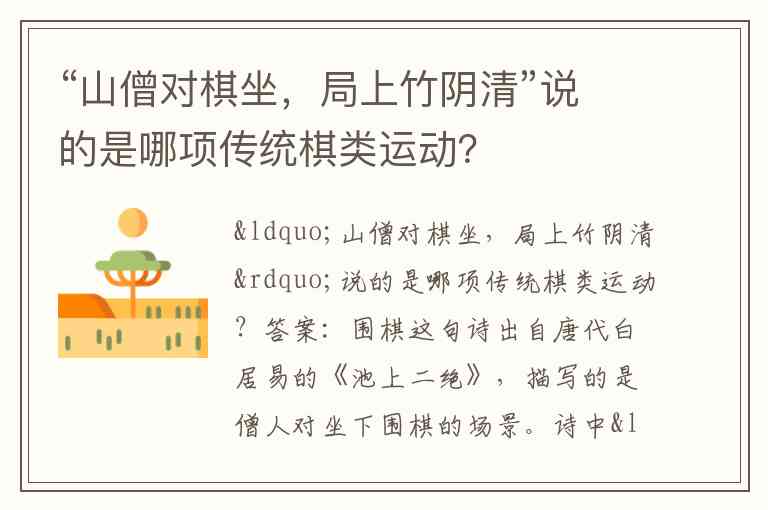 “山僧对棋坐,局上竹阴清”说的是哪项传统棋类运动?