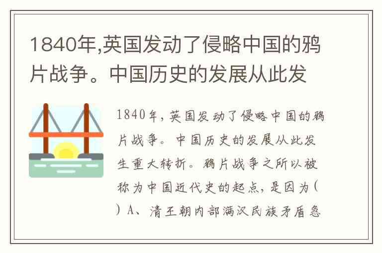 1840年,英国发动了侵略中国的鸦片战争。中国历史的发展从此发生重大转折。鸦片战争之所以被称为中国近代史的起点,是因为() A、清王朝内部满汉民族矛盾急剧恶化 B、民族意识已经普遍觉醒 C、农民起义规模空前 D、中国社会逐步变成了半殖民地半封建社会