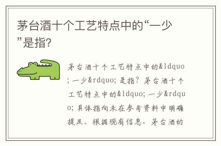若“一少”属于民间总结的工艺口诀,可能指向某环节的用量控制或操作限制,但目前公开的权威工艺描述中尚未见对应术语。建议参考茅台酒官方发布的工艺详解或《茅台酒传统酿造工艺》等权威文献,以获取更精准的信息。