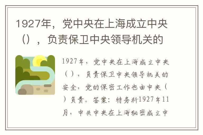 1927年,党中央在上海成立中央(),负责保卫中央领导机关的安全,党的保密工作也由中央()负责。