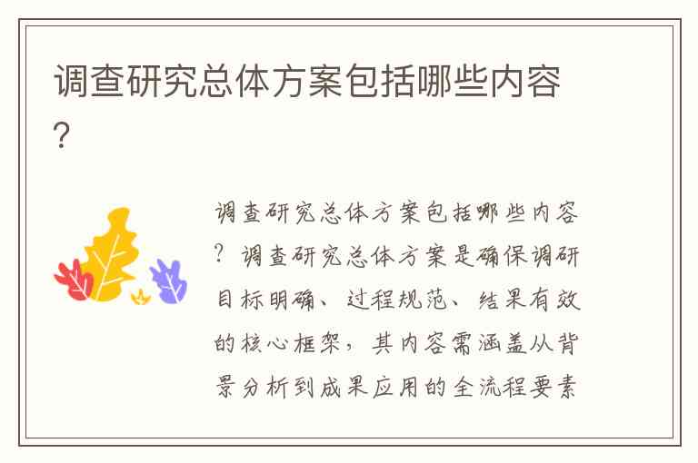 调查研究总体方案包括哪些内容?