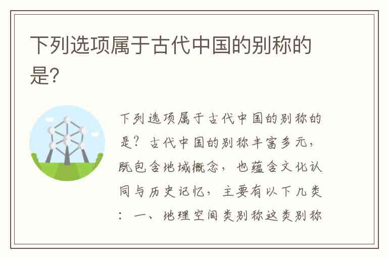 古代中国的别称丰富多元,既包含地域概念,也蕴含文化认同与历史记忆,主要有以下几类: