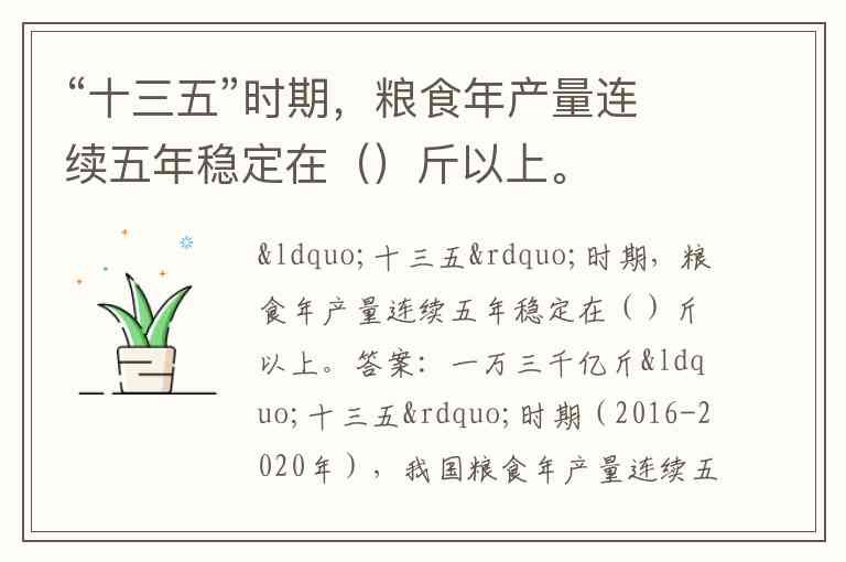 需注意“1.3万亿斤”是“十三五”的稳定线,而“十四五”期间(2021-2025年)我国粮食产量进一步提升,2024年首次突破1.4万亿斤。但题目明确限定“十三五时期”,故答案严格锁定“一万三千亿斤”。