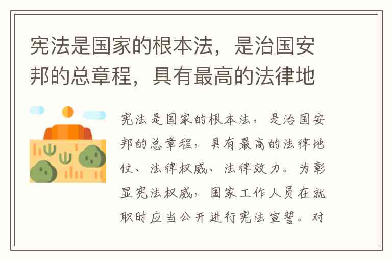宪法是国家的根本法,是治国安邦的总章程,具有最高的法律地位、法律权威、法律效力。为彰显宪法权威,国家工作人员在就职时应当公开进行宪法宣誓。对于宪法宣誓,下列说法正确的是()。