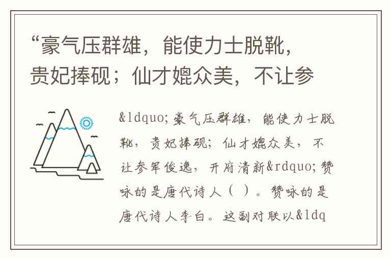“豪气压群雄,能使力士脱靴,贵妃捧砚;仙才媲众美,不让参军俊逸,开府清新”赞咏的是唐代诗人( )。
