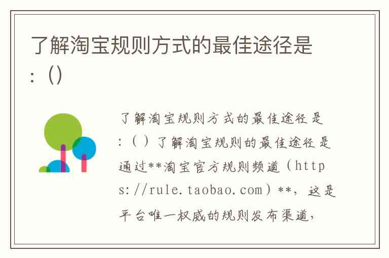 了解淘宝规则的最佳途径是通过**淘宝官方规则频道(https://rule.taobao.com)**,这是平台唯一权威的规则发布渠道,涵盖全量规则文本、分类导航及实时更新通知。以下是具体渠道及使用场景: