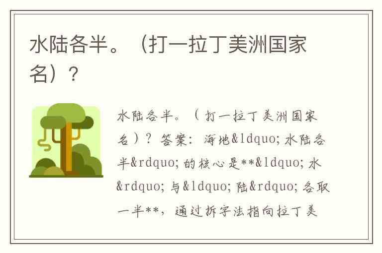 “水陆各半”的核心是**“水”与“陆”各取一半**,通过拆字法指向拉丁美洲国家“海地”。