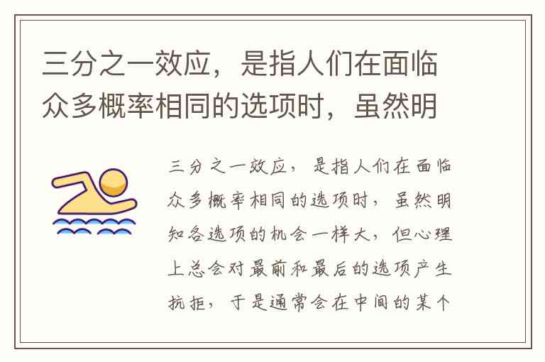 三分之一效应的核心是:面对概率相同的多个选项时,因抗拒首末选项而选择中间项。若某情形不符合「选项概率相同」「抗拒首末项」「选择中间项」这三个要素,则无法用该效应解释。
