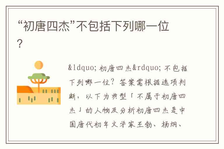 若选项为 「王勃、杨炯、卢照邻、骆宾王」之外的任何人物,均不属于初唐四杰。例如: