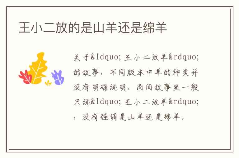 关于“王小二放羊”的故事,不同版本中羊的种类并没有明确说明。