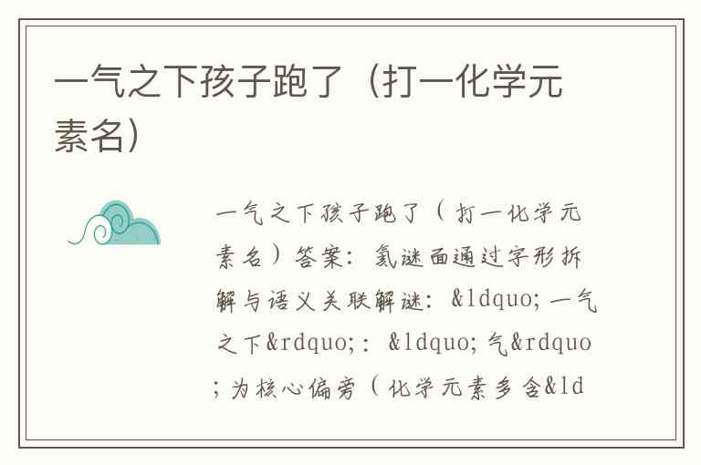 一气之下孩子跑了(打一化学元素名)