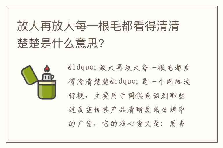“放大再放大每一根毛都看得清清楚楚”是一个网络流行梗,主要用于调侃或讽刺那些过度宣传其产品清晰度或分辨率的广告。