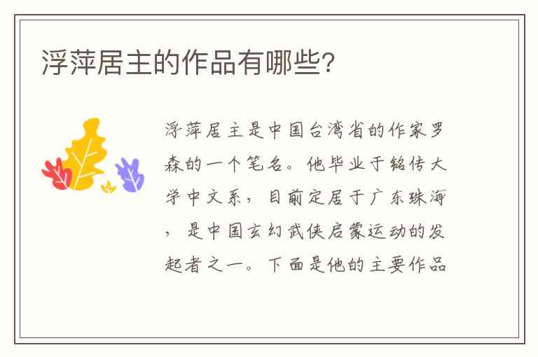 的一个笔名。他毕业于铭传大学中文系,目前定居于广东珠海,是中国玄幻武侠启蒙运动的发起者之一。