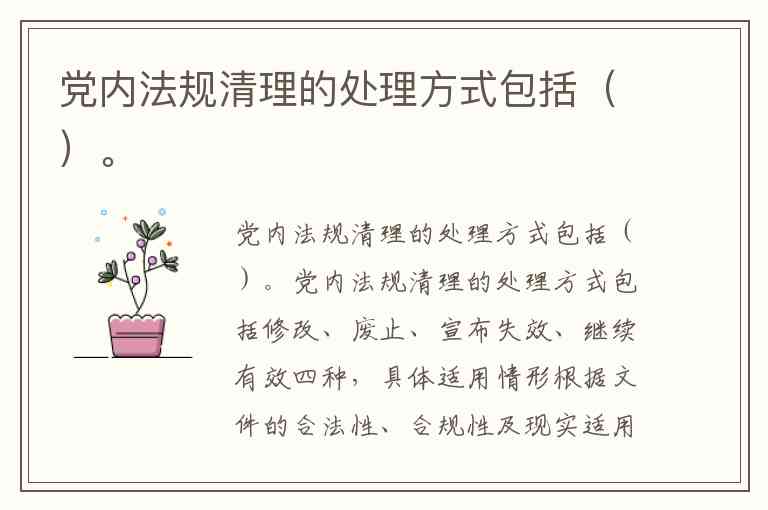 党内法规清理的处理方式包括修改、废止、宣布失效、继续有效四种,具体适用情形根据文件的合法性、合规性及现实适用性确定。