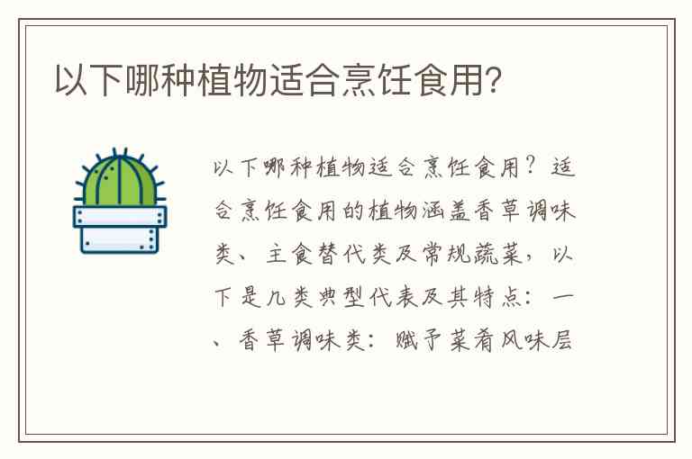 适合烹饪食用的植物涵盖香草调味类、主食替代类及常规蔬菜,以下是几类典型代表及其特点: