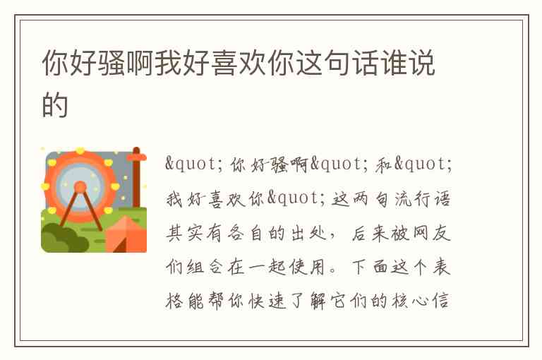 "你好骚啊"和"我好喜欢你"这两句流行语其实有各自的出处,后来被网友们组合在一起使用。下面这个表格能帮你快速了解它们的核心信息: