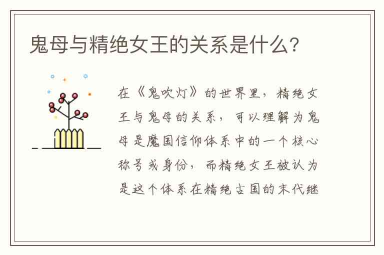 在《鬼吹灯》的世界里,精绝女王与鬼母的关系,可以理解为鬼母是魔国信仰体系中的一个核心称号或身份,而精绝女王被认为是这个体系在精绝古国的末代继承者或显现。