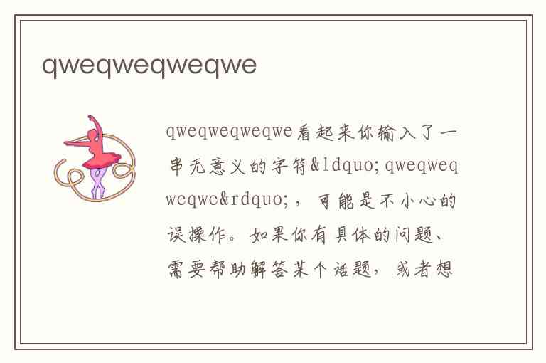 看起来你输入了一串无意义的字符“qweqweqweqwe”,可能是不小心的误操作。如果你有具体的问题、需要帮助解答某个话题,或者想进行任何形式的交流,都可以告诉我,我会尽力为你提供准确、有用的信息!