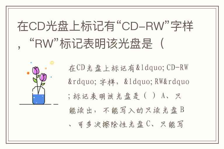 “CD-RW”中的“RW”是“Rewritable”(可重写)的缩写,表明该光盘可多次擦除并重新写入数据,核心特性与选项B完全匹配。