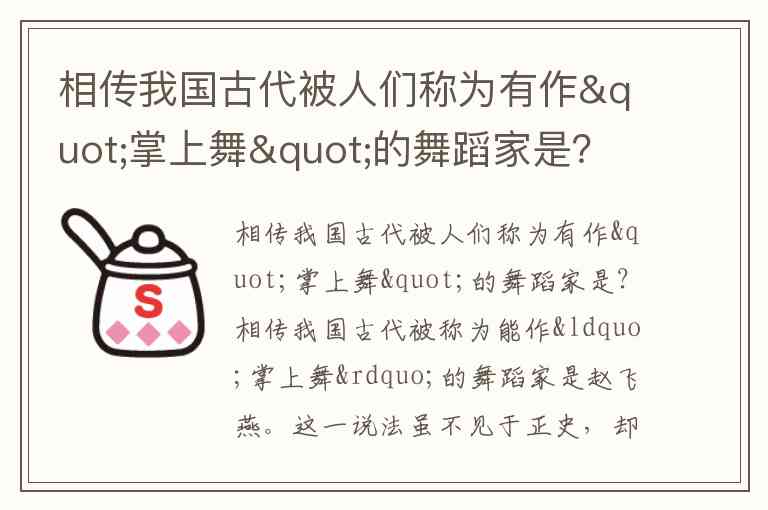相传我国古代被人们称为有作"掌上舞"的舞蹈家是?