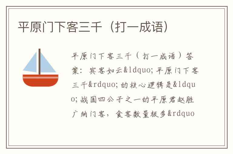 平原门下客三千(打一成语)