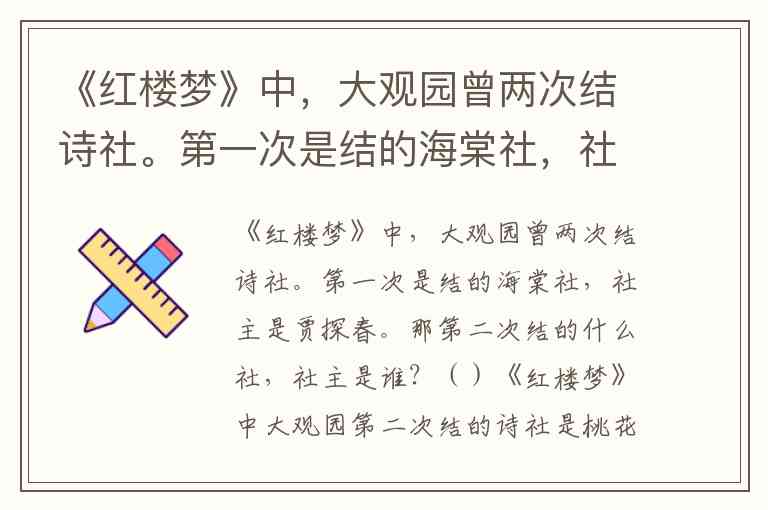 《红楼梦》中,大观园曾两次结诗社。第一次是结的海棠社,社主是贾探春。那第二次结的什么社,社主是谁?()