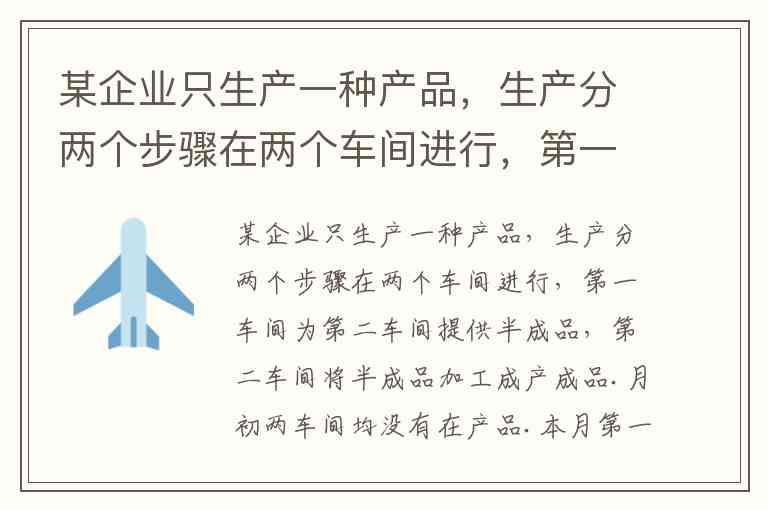 后续步骤在产品:第二车间月末在产品数量为 件(因第二车间从第一车间转入80件,完工50件)。由于本题属于“一对一”生产模式(前步骤1件半成品对应后步骤1件产品),故第二车间在产品耗用第一车间半成品数量为30件,且无需乘以本步骤完工程度(因这些半成品已在第一车间全部完工)。