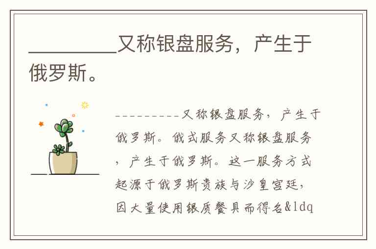 _________又称银盘服务,产生于俄罗斯。