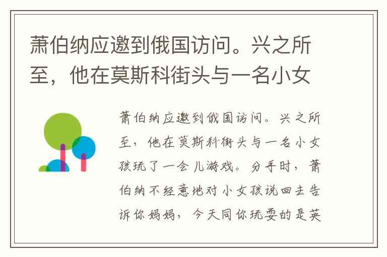 当萧伯纳期待被崇拜时,小女孩用最纯真的平等,给他上了人生最重要的一课。这个故事至今提醒我们:真正的尊重,始于放下“名气”的滤镜,看见每个灵魂本有的价值。