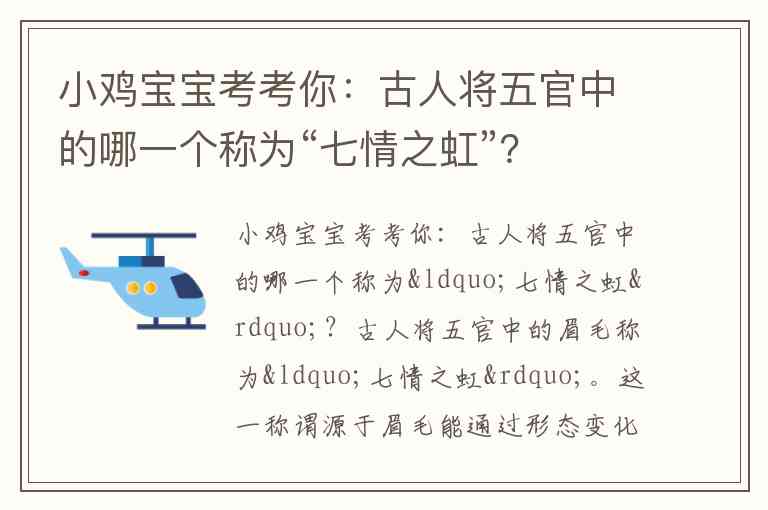小鸡宝宝考考你:古人将五官中的哪一个称为“七情之虹”?