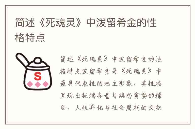 简述《死魂灵》中泼留希金的性格特点